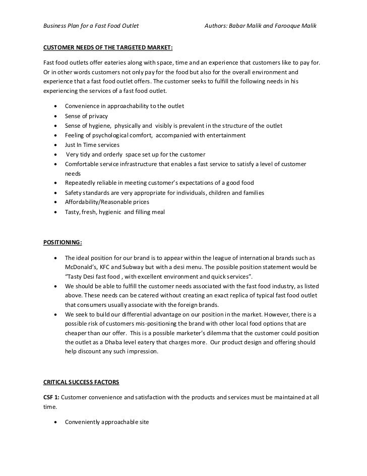 Fast Food Restaurant Business Plan Morebusiness Com